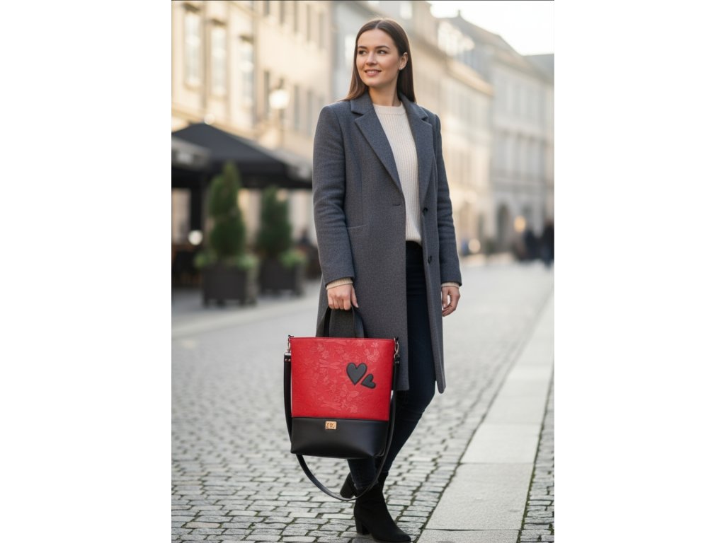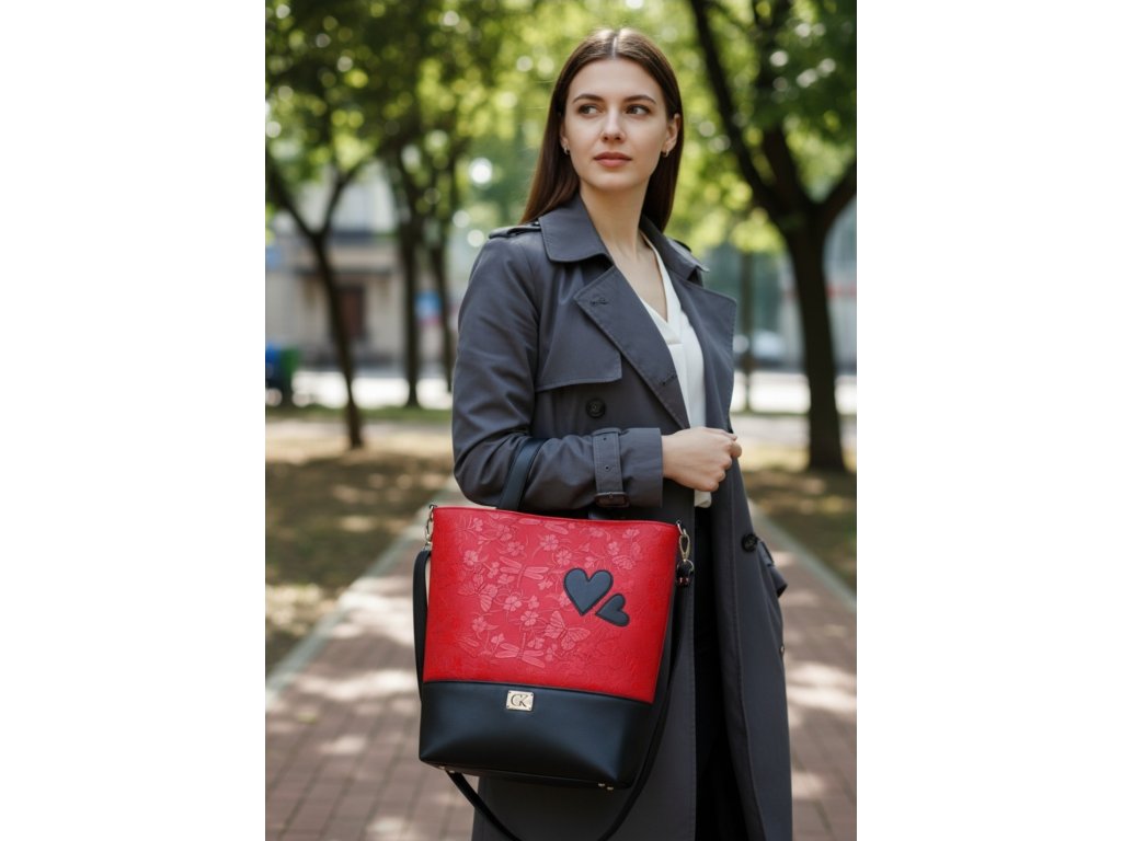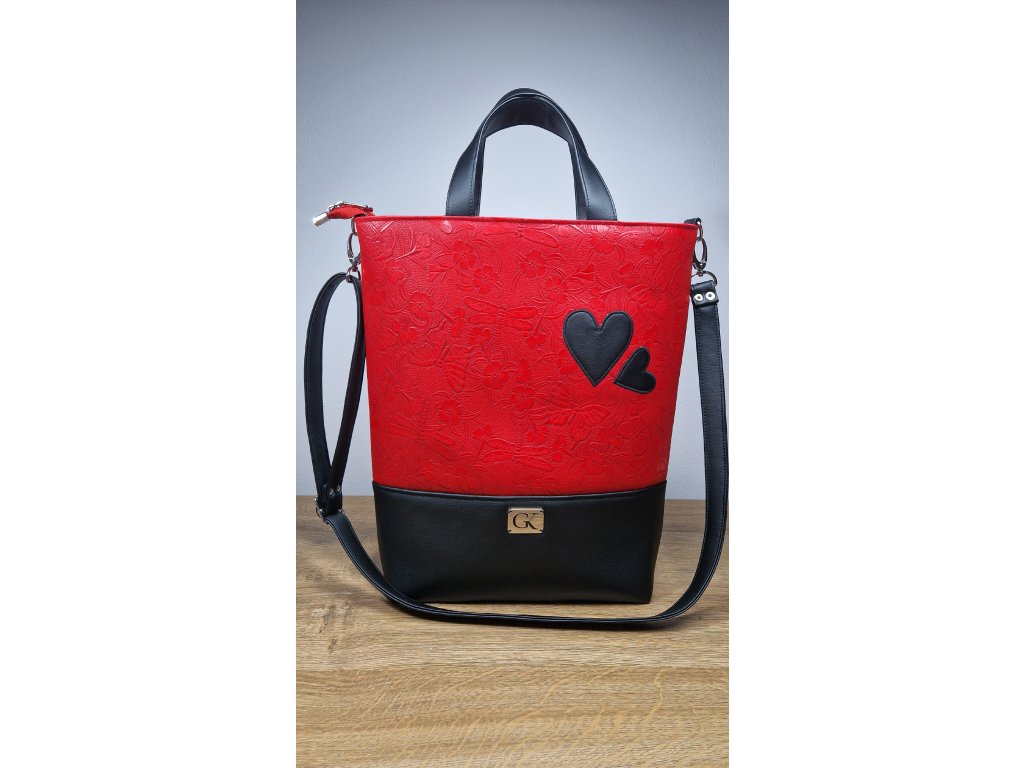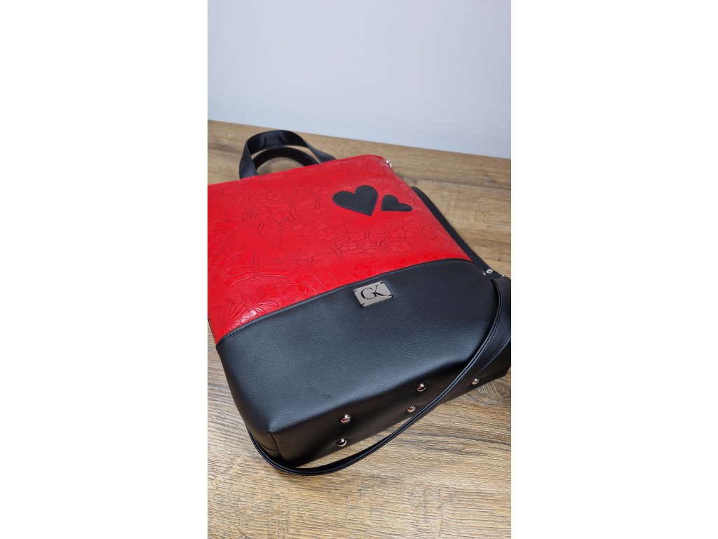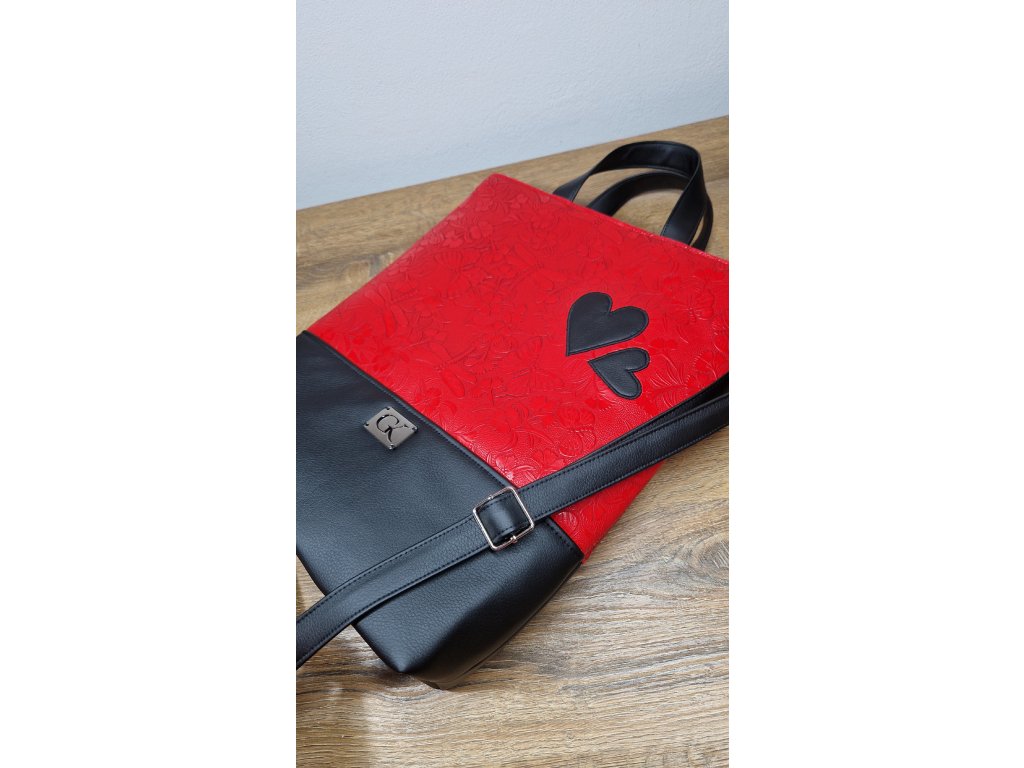 Kabelka SÁRA červeno - čierna srdcia