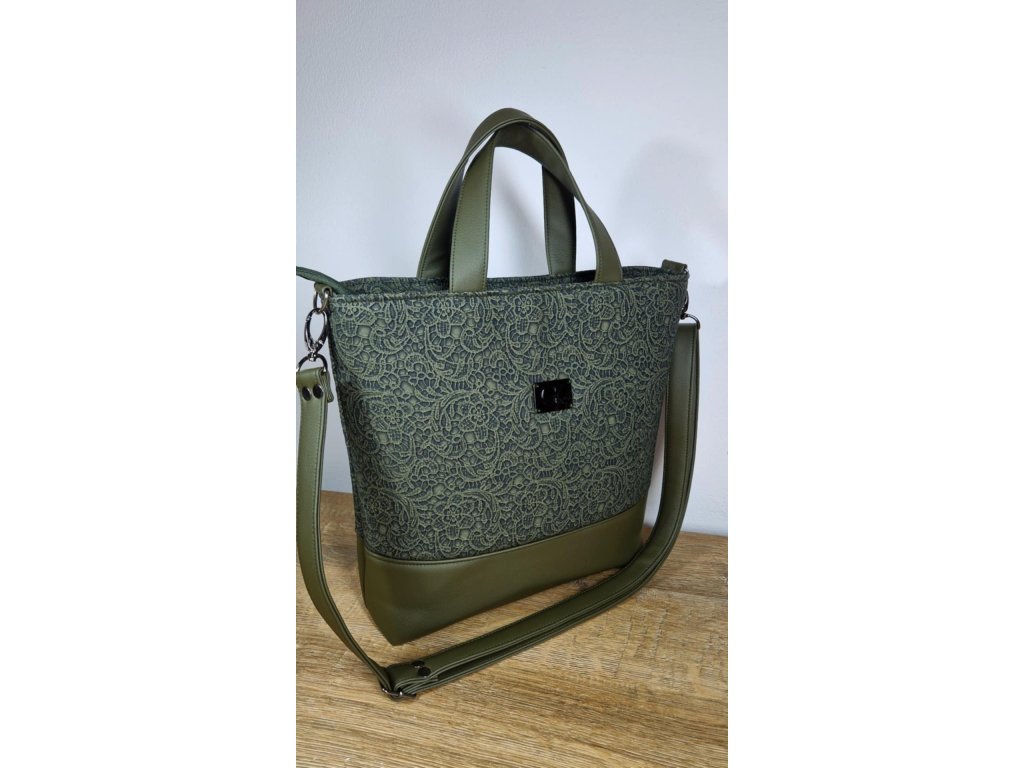 Elegantná olivová kabelka, ktorá spája jemný čipkovaný vzor s hladkou koženkou. Výsledkom je moderný a zároveň ženský dizajn, ktorý pôsobí nadčasovo a veľmi vkusne. Kabelka je dostatočne priestranná na bežné denné nosenie a jej tvar krásne drží vďaka kvalitným materiálom a výstuži. .