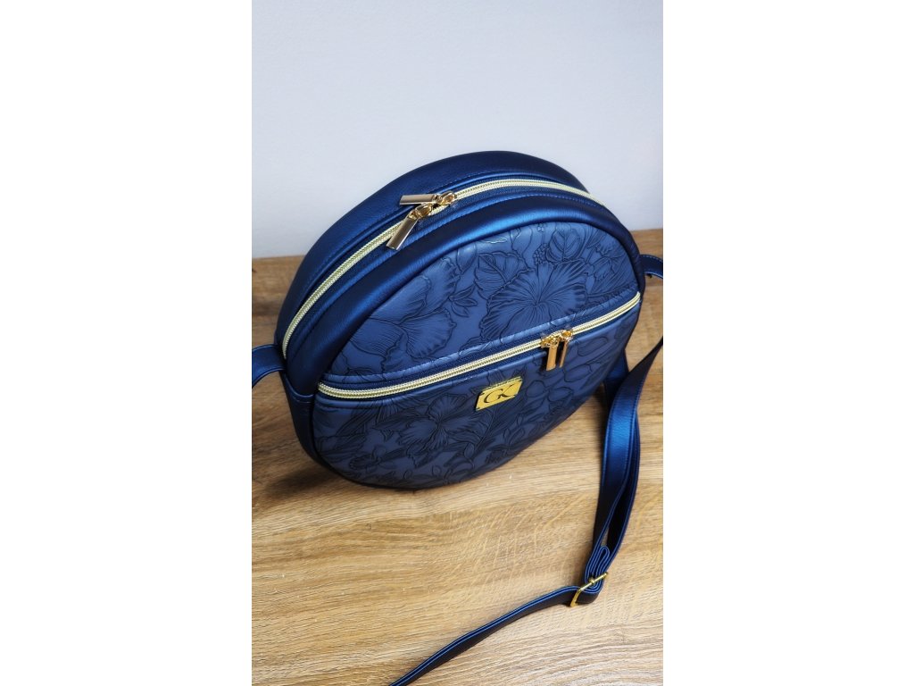 Materiál je nádherná reliéfna tmavomodrá koženka. Vnútro kabelky je z bavlnenej podšívky s otvoreným vreckom. Podšívka podľa aktuálnej ponuky.