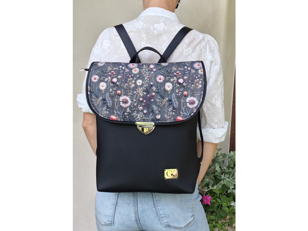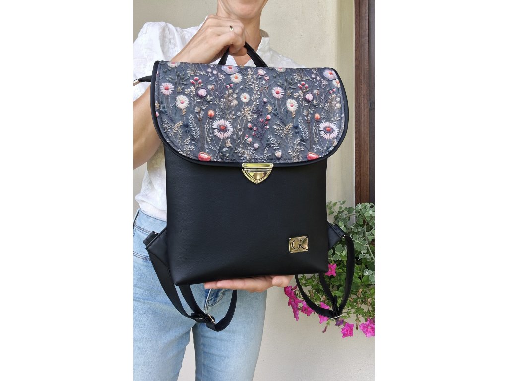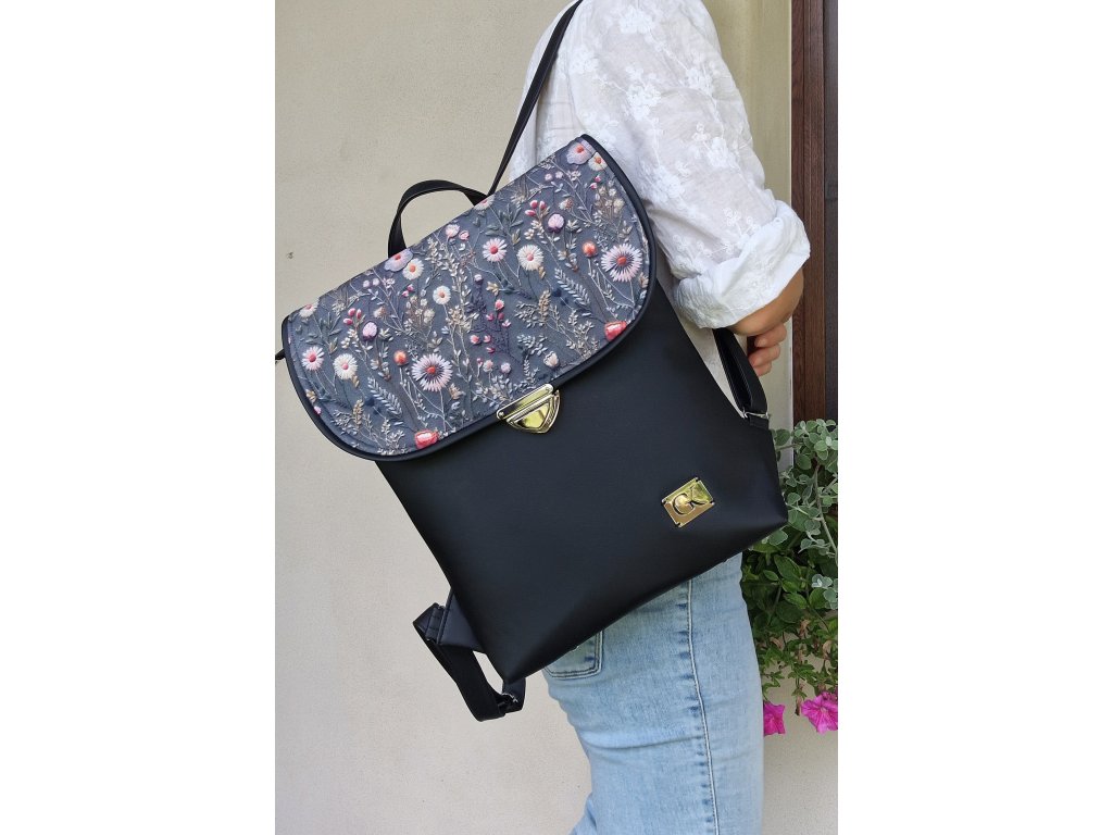 ROSIE čierno šedý s kvietkami