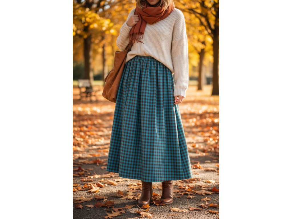 Sukňa je ušitá z bavlnenej hrubšej látky, ideálnej na jeseň a zimu.