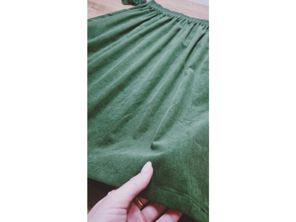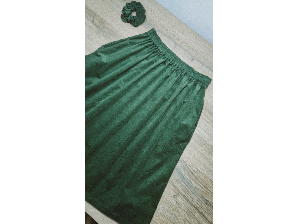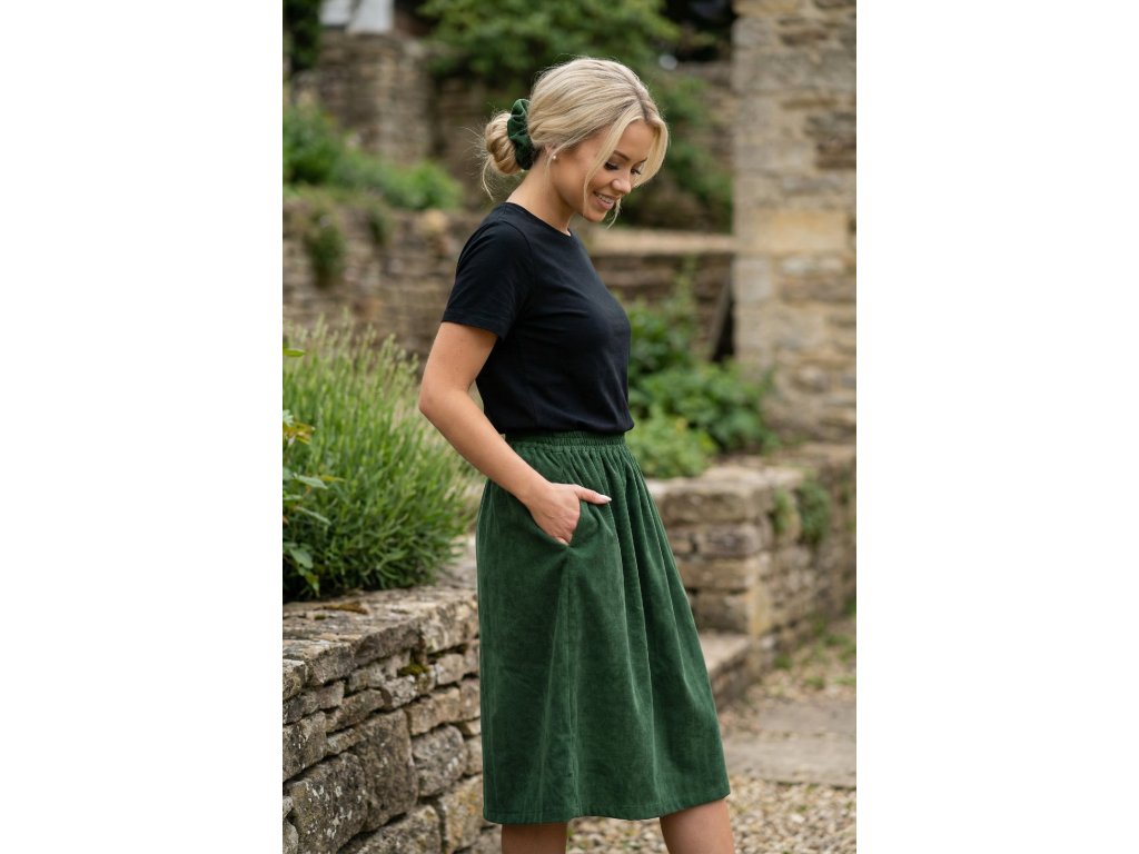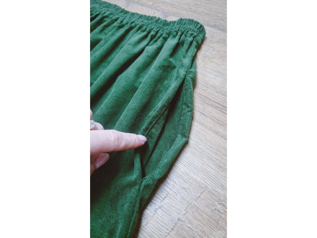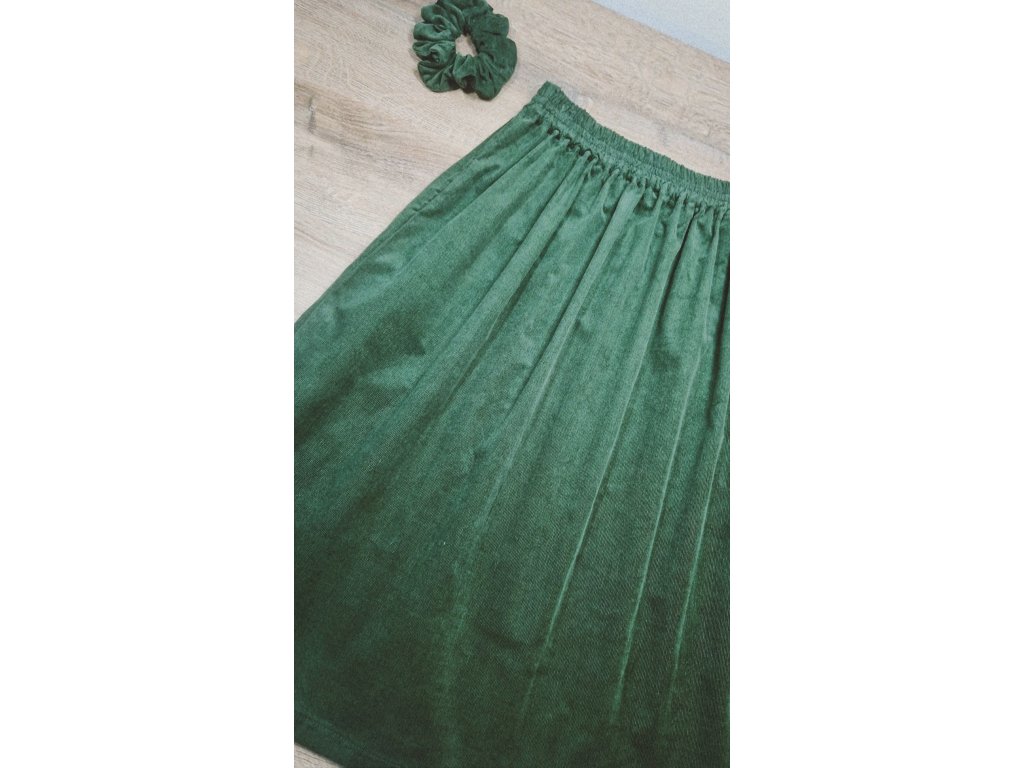 Sukňa je ušitá z kvalitného jemného menčestru (inak nazývaný aj prací kord), ktorý je známy svojou odolnosťou. Materiál je príjemne mäkký na dotyk, drží tvar a zároveň poskytuje dostatočné teplo počas chladnejších dní a je príjemne vzdušný počas tých teplých. Ide o 100% bavlnenú tkaninu s veľmi hustým a jemným zvislým riadkovaním, ktorá v sebe spája tradíciu s moderným komfortom.