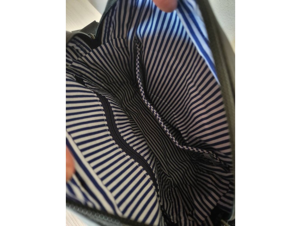 Dizajn: Moderný, kompaktný a zároveň priestranný tvar. Kvalitná koženka v kombinácii s čiernym popruhom a strieborným zipsom vytvára nadčasový dizajn.