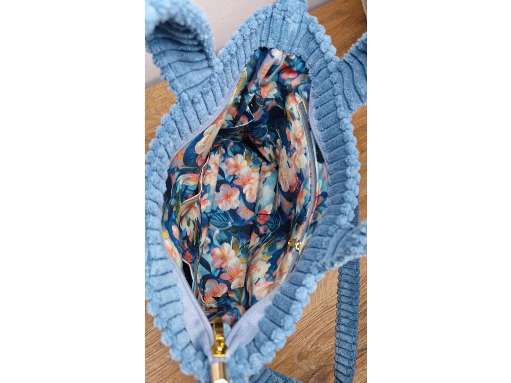 Vnútro kabelky je z bavlnenej podšívky so zipsovým vreckom a 3 otvorenými vreckami. Zapínanie kabelky je na zips. Remienok je s nastaviteľnou dĺžkou.
